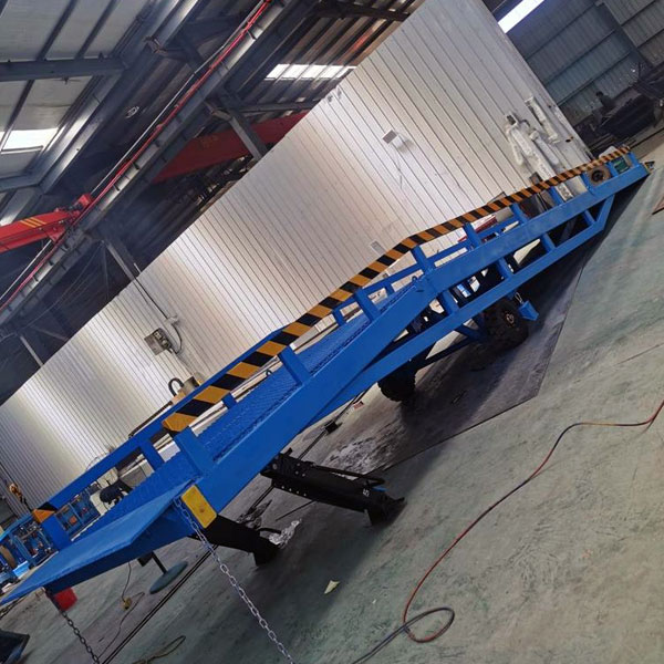 移動式登車橋廠家-移動登車橋-液壓式倉庫卸貨平臺 叉車橋是與叉車配合使用的貨物裝卸輔助設備,可根據汽車車廂的高低調節高度,叉車可以直接通過本設備駛入車廂內部進行貨物的批量裝卸,只需單人作業,即可實物的快速裝卸。它使企業減少大量勞力,提高工作效率,獲取更大經濟效益。